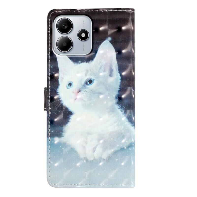 Θήκη τηλεφώνου από δέρμα με 3D σχέδιο για Redmi Note 14 5G (3D Ροζ Μπλε Μάρμαρο)
