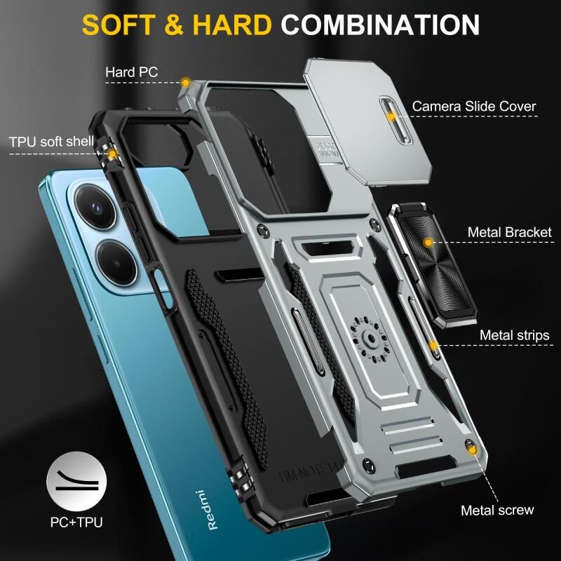 Θήκη τηλεφώνου με υβριδική προστασία PC TPU και ασπίδα κάμερας για Redmi Note 14 5G / 4G 163.25mm (Grey)