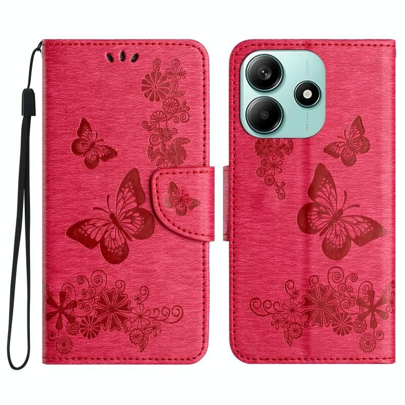Θήκη τηλεφώνου από δέρμα με ανάγλυφο σχέδιο πεταλούδας για Redmi Note 14 5G (Κόκκινο)