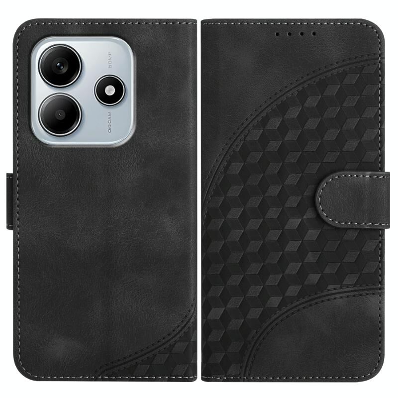 Θήκη δερμάτινη για Redmi Note 14 5G με ανάγλυφο σχέδιο κεφαλής ελέφαντα και κορδόνι (Μαύρο)