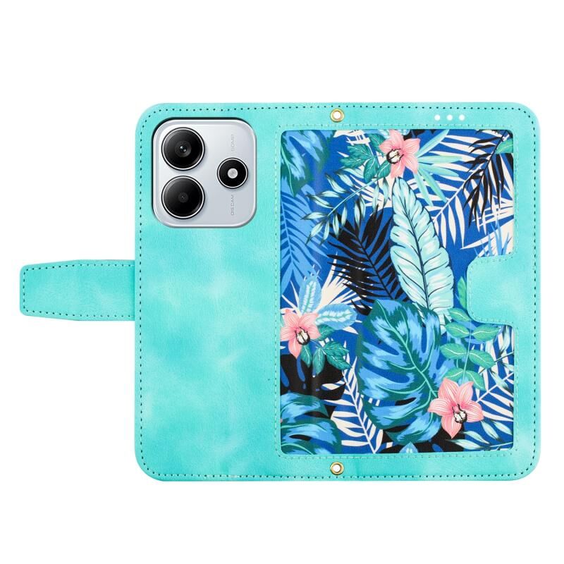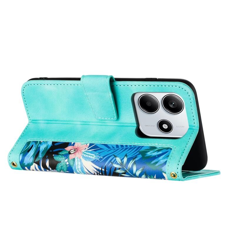 Θήκη τηλεφώνου από δέρμα με λουλουδάτο σχέδιο και λουρί για Redmi Note 14 5G (Ανοιχτό Μπλε)