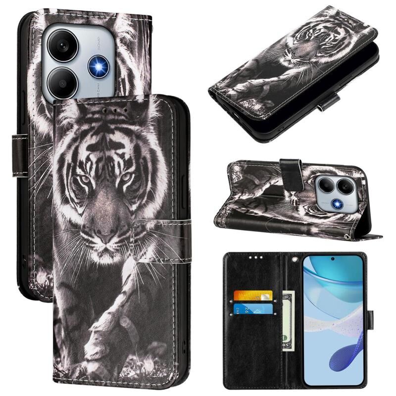 Θήκη τηλεφώνου από δέρμα με απλή ύφανση και πολύχρωμο σχέδιο για Redmi Note 14 5G Global (Τριαντάφυλλα σε μαύρο φόντο)