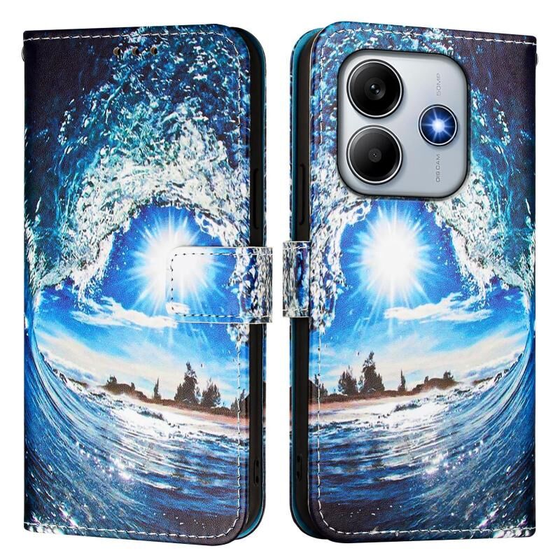 Θήκη τηλεφώνου από δέρμα με απλή ύφανση και πολύχρωμο σχέδιο (Κύματα και Ήλιος) για Redmi Note 14 5G Global.