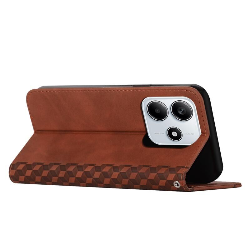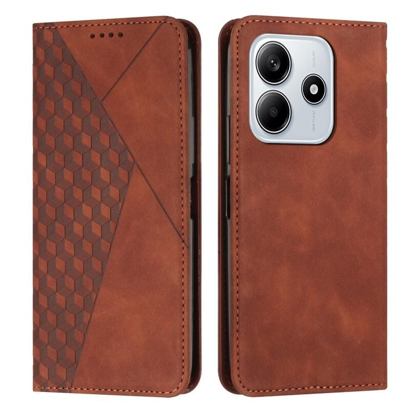 Θήκη τηλεφώνου από δέρμα με μαγνητική αίσθηση, τύπου "Diamond Splicing", για Redmi Note 14 5G Global (Καφέ)