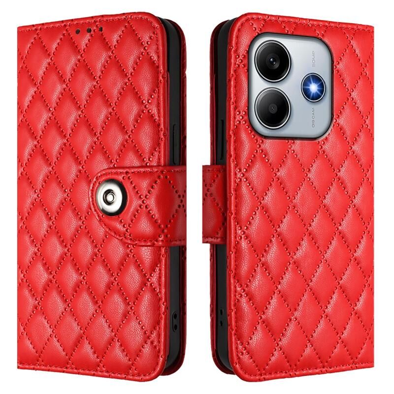 For Redmi Note 14 5G Global Rhombic Texture Flip Leather Phone Case with Lanyard(Red)