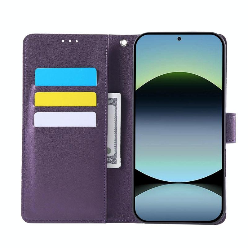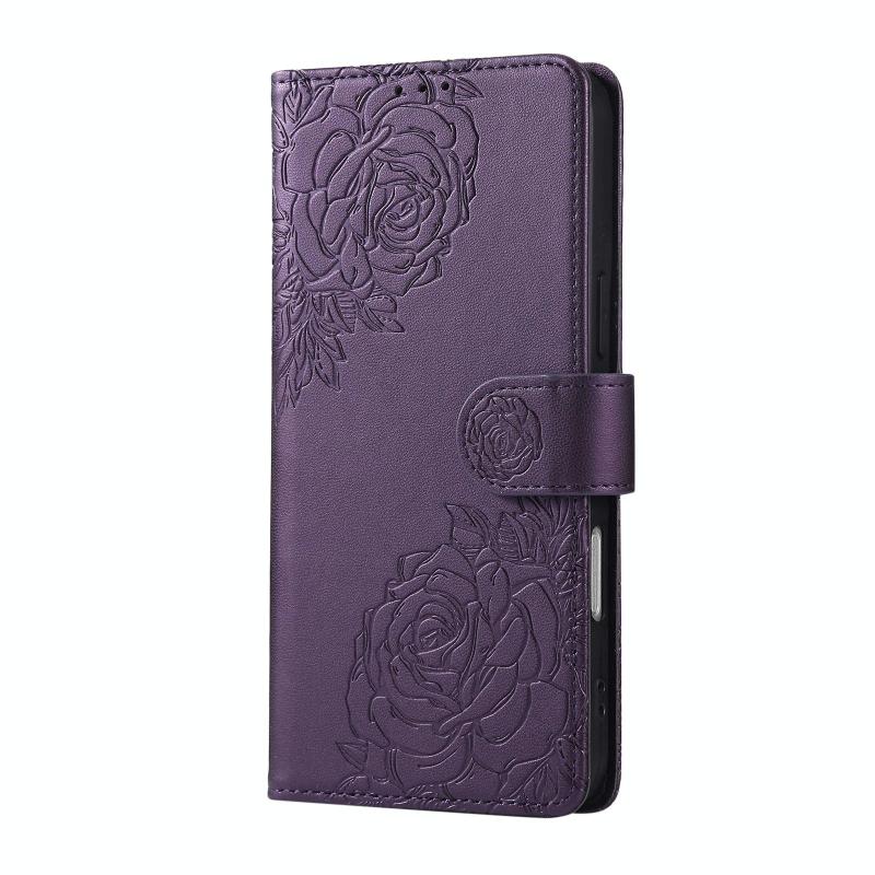 For Redmi Note 14 5G Global Rose Flower Embossed 3-Card Slots Leather Phone Case(Deep Purple)