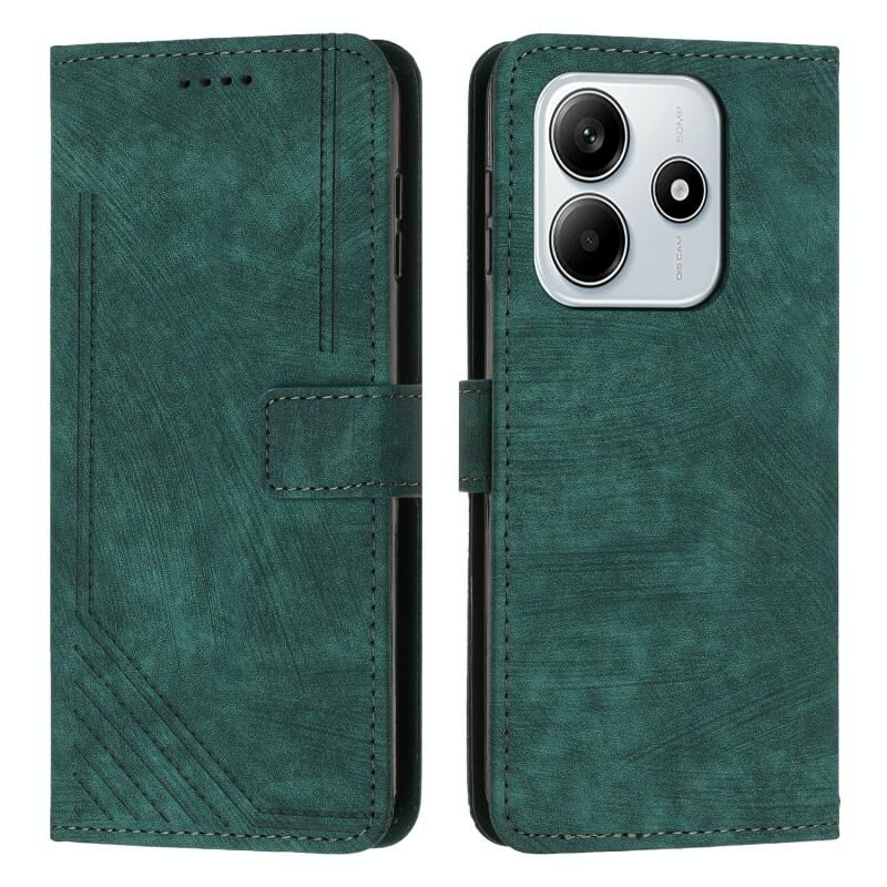 Θήκη τηλεφώνου από δέρμα με υφή και ραβδωτό σχέδιο για Redmi Note 14 5G Global με μακρύ κορδόνι (Καφέ)
