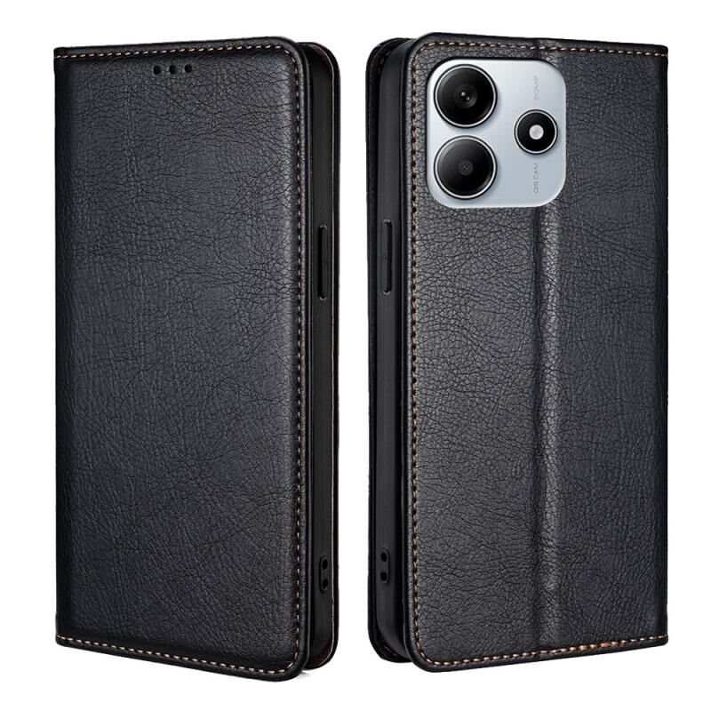 Για Redmi Note 14 5G Gloss Oil Solid Color Μαγνητική δερμάτινη θήκη τηλεφώνου (μαύρο)