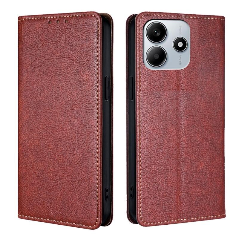 Για Redmi Note 14 5G Gloss Oil Solid Color Μαγνητική δερμάτινη θήκη τηλεφώνου (καφέ)