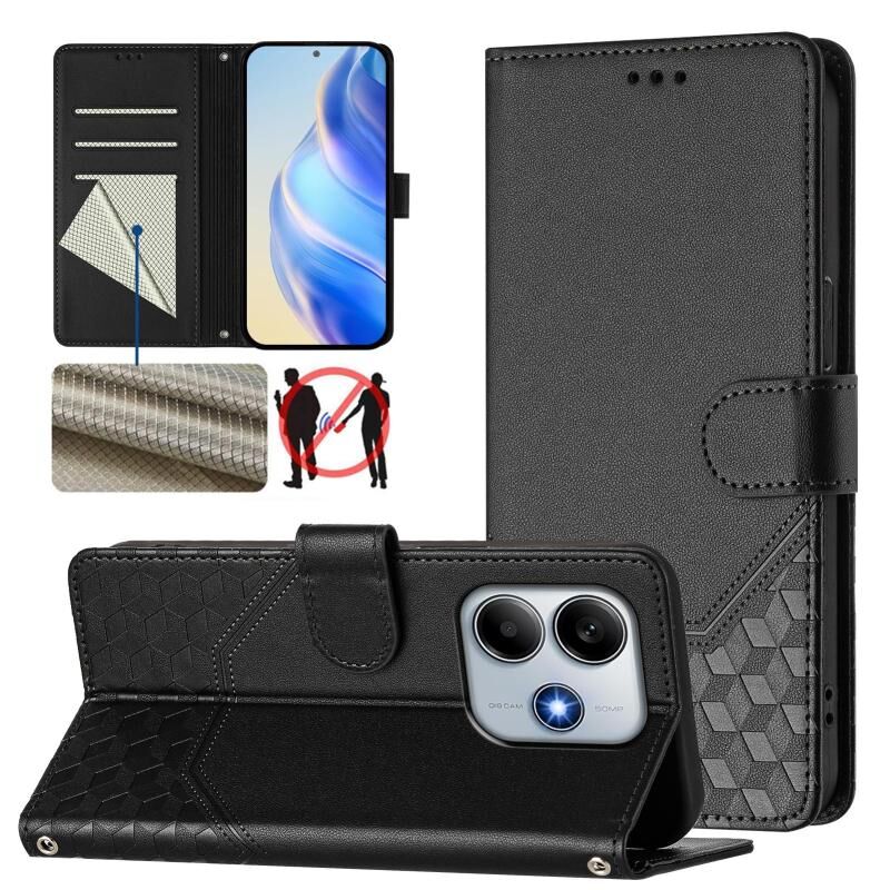 Για Redmi Σημείωση 14 5G κηρήθρα ανάγλυφο RFID δερμάτινη θήκη τηλεφώνου (Μαύρο)