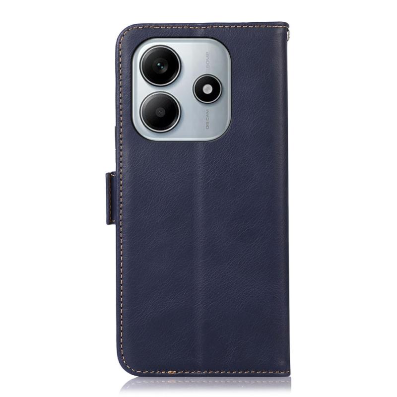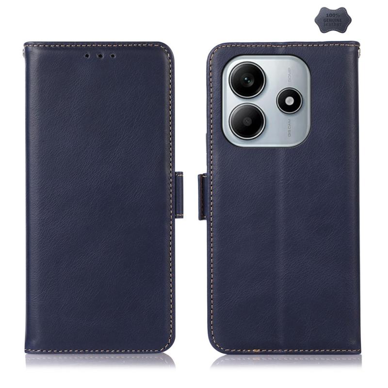 For Redmi Note 14 5G Magnetic Crazy Horse Texture Genuine Leather RFID Phone Case(Blue)