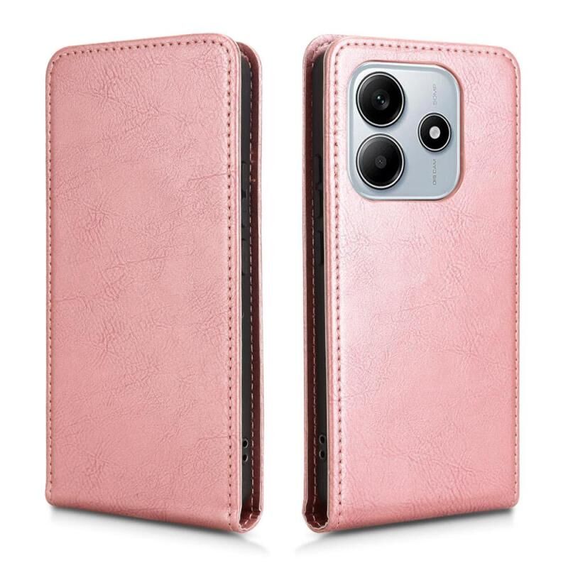 For Redmi Note 14 5G Magnetic Vertical Flip Leather Phone Case(Rose Gold)