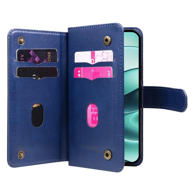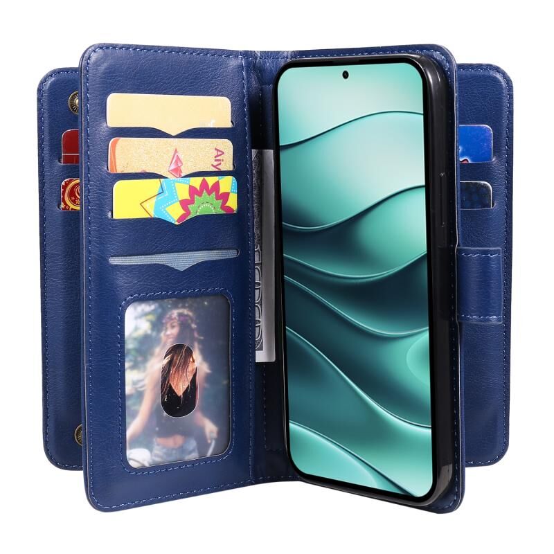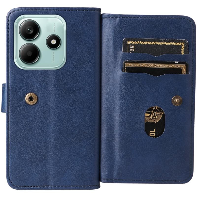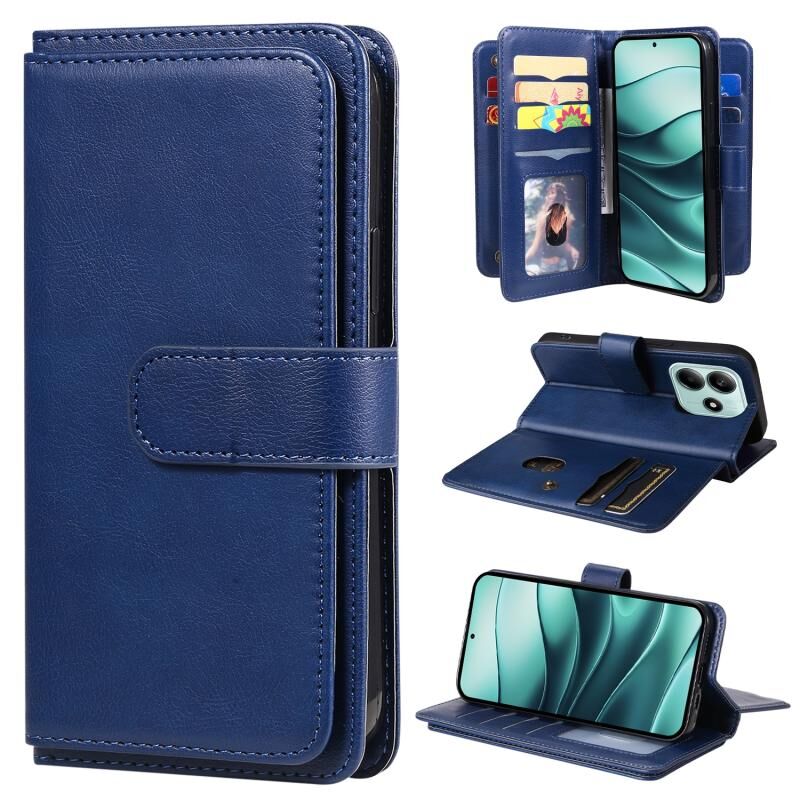 Για Redmi Note 14 5G Πολυλειτουργικό πορτοφόλι 10 υποδοχές καρτών Δερμάτινη θήκη τηλεφώνου (σκούρο μπλε)