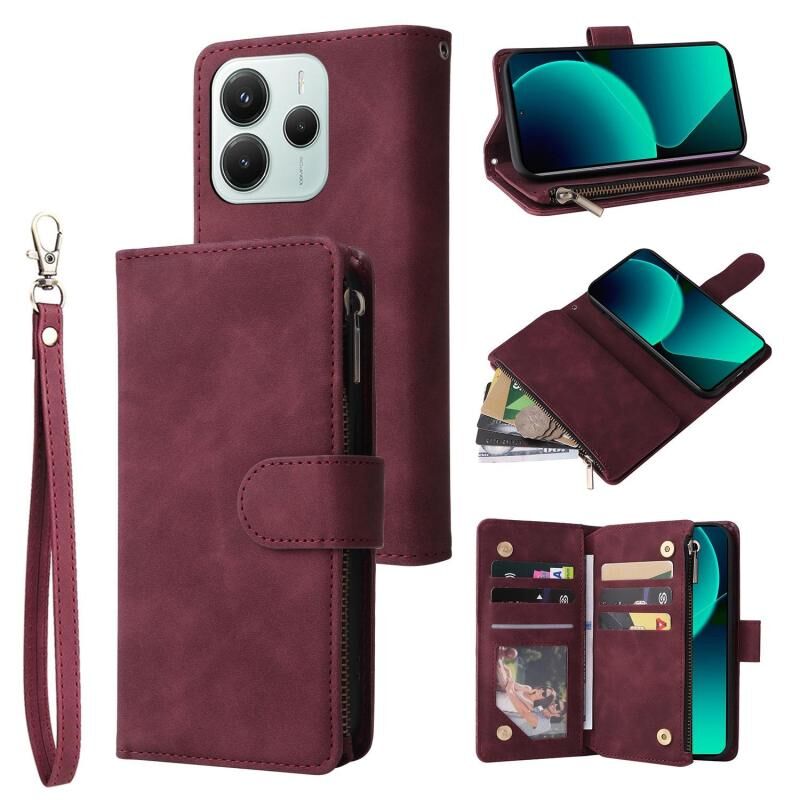 Για Redmi Note 14 5G Πολυλειτουργική Θήκη Τηλεφώνου Δερμάτινη με Πολλαπλές Κάρτες (Κρασί)