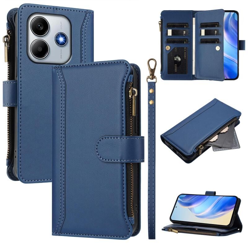 Για Redmi Note 14 5G / Poco M7 Pro 5G Μαγνητικό Κλείσιμο 9 Θήκες Κάρτας Φερμουάρ Δερμάτινη Θήκη με Λουρί Χεριού (Σκούρο μπλε)