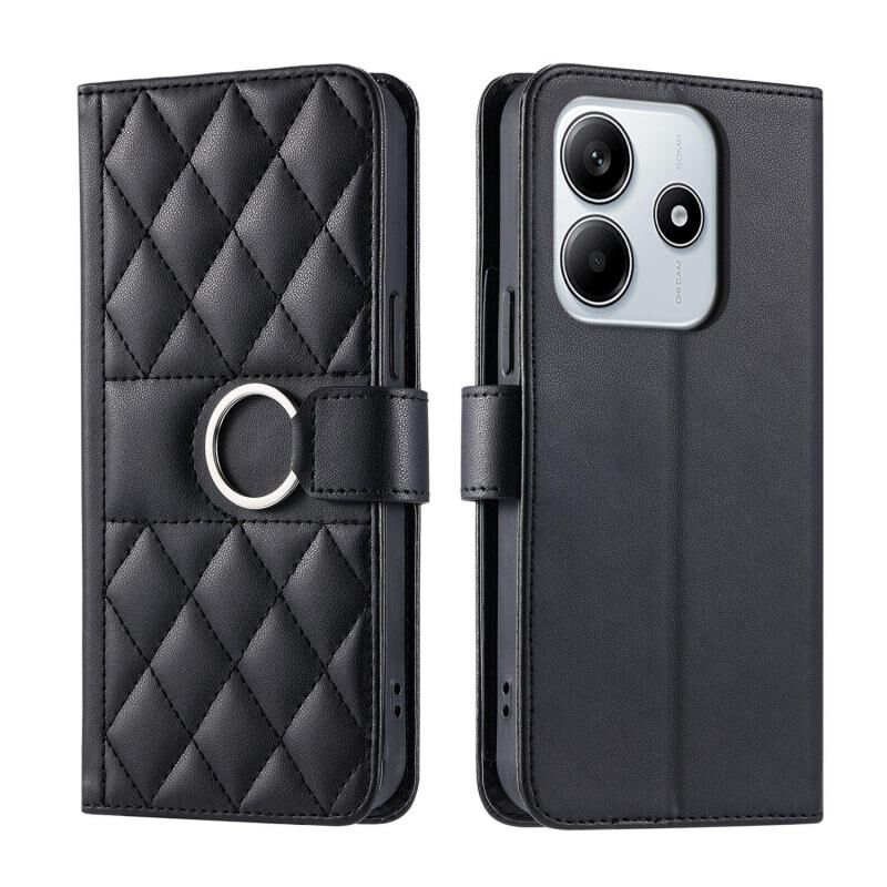Θήκη τηλεφώνου από δέρμα με γεωμετρικό σχέδιο και δακτύλιο για Blackmi Note 14 5G / Poco M7 Pro 5G (Κόκκινο)