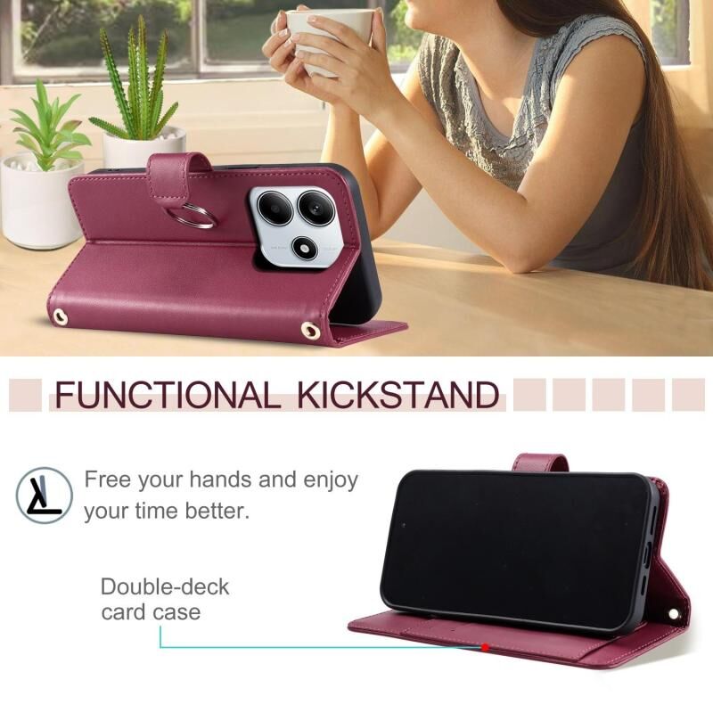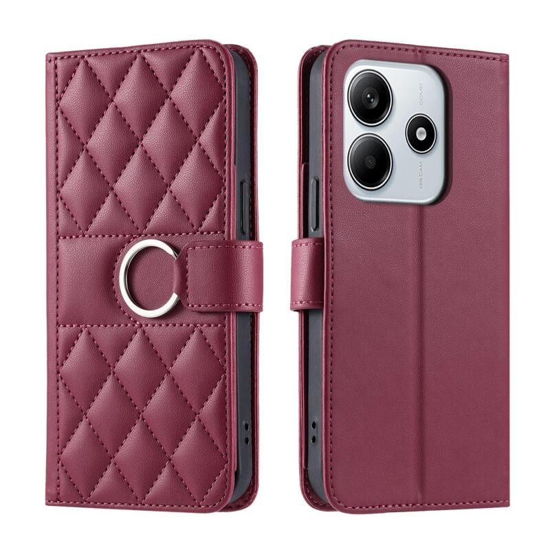 Θήκη τηλεφώνου από δέρμα με γεωμετρικό σχέδιο και δακτύλιο για Redmi Note 14 5G / Poco M7 Pro 5G (Κόκκινο)