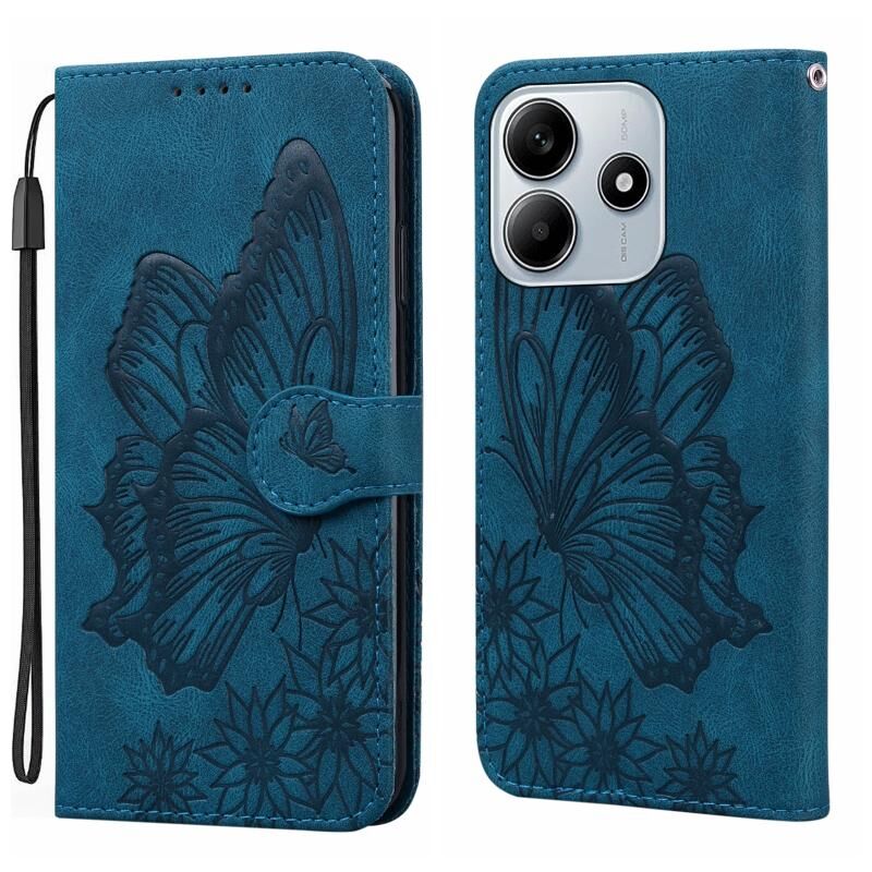 Θήκη τηλεφώνου από δέρμα με οριζόντιο άνοιγμα για Redmi Note 14 5G, με ανάγλυφο σχέδιο πεταλούδων και ρετρό αίσθηση (Μαύρο)