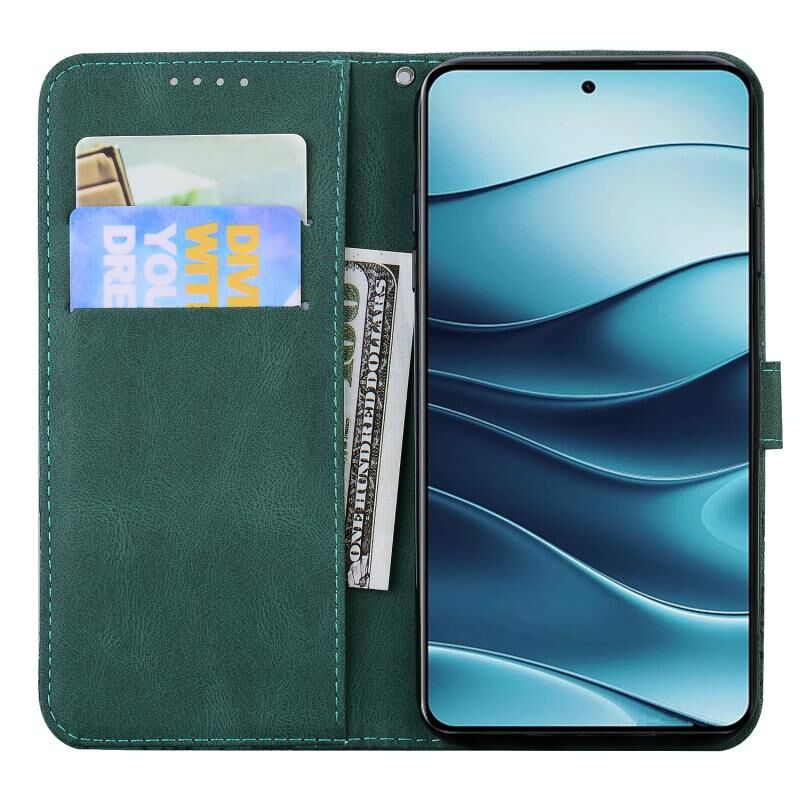 Θήκη τηλεφώνου από δέρμα με οριζόντιο άνοιγμα για Redmi Note 14 5G, με ανάγλυφο σχέδιο πεταλούδων και ρετρό αίσθηση (Μαύρο)