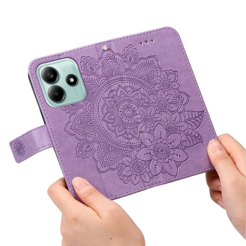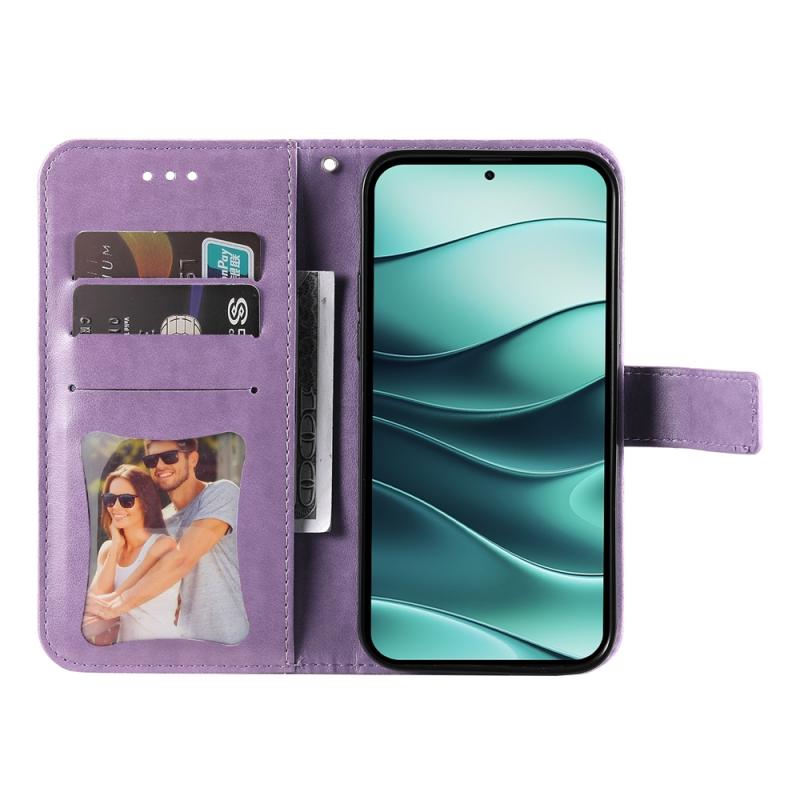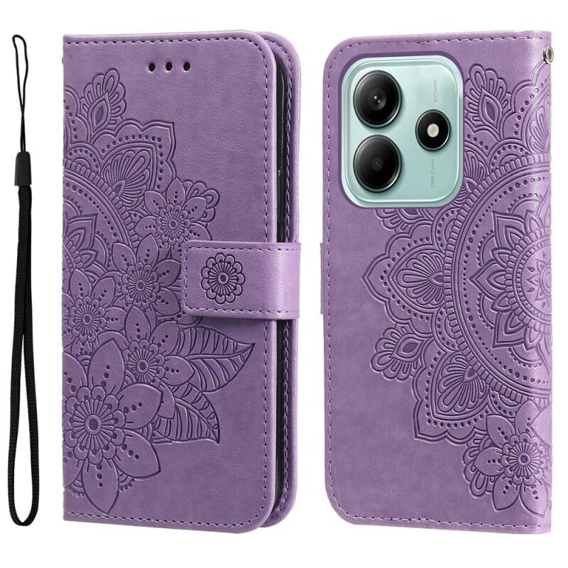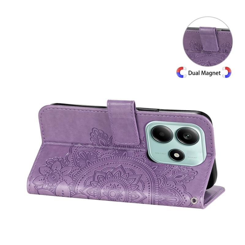 For Redmi Note 14 5G Seven-petal Flowers Embossing Leather Phone Case(Light Purple)