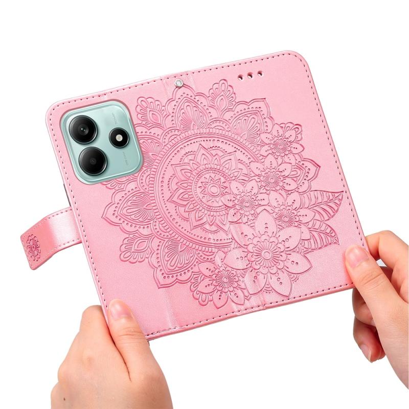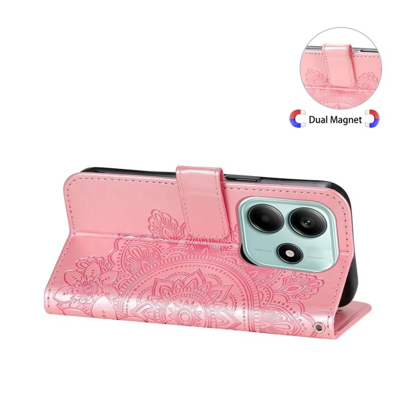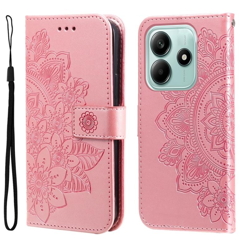 For Redmi Note 14 5G Seven-petal Flowers Embossing Leather Phone Case(Rose Gold)