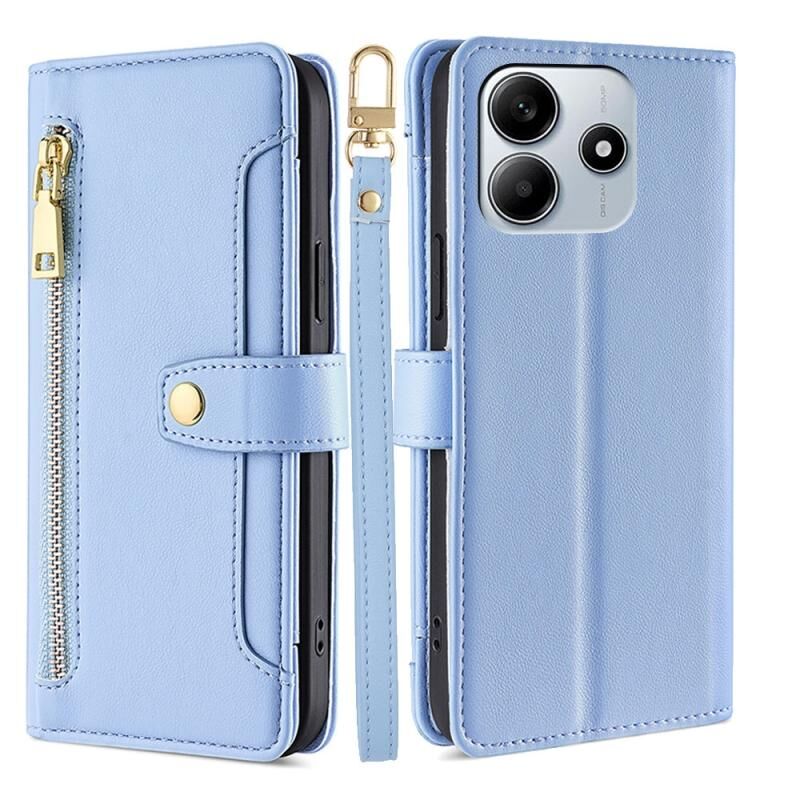 Για Redmi Σημείωση 14 5G Πρόβατα Υφή Cross-body φερμουάρ πορτοφόλι δερμάτινη θήκη τηλεφώνου (μπλε)
