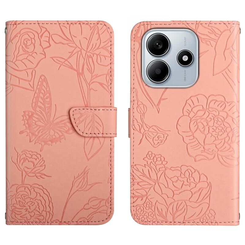 Θήκη τηλεφώνου από δέρμα με ανάγλυφο σχέδιο πεταλούδας και αίσθηση δέρματος για Redmi Note 14 5G (Μωβ)