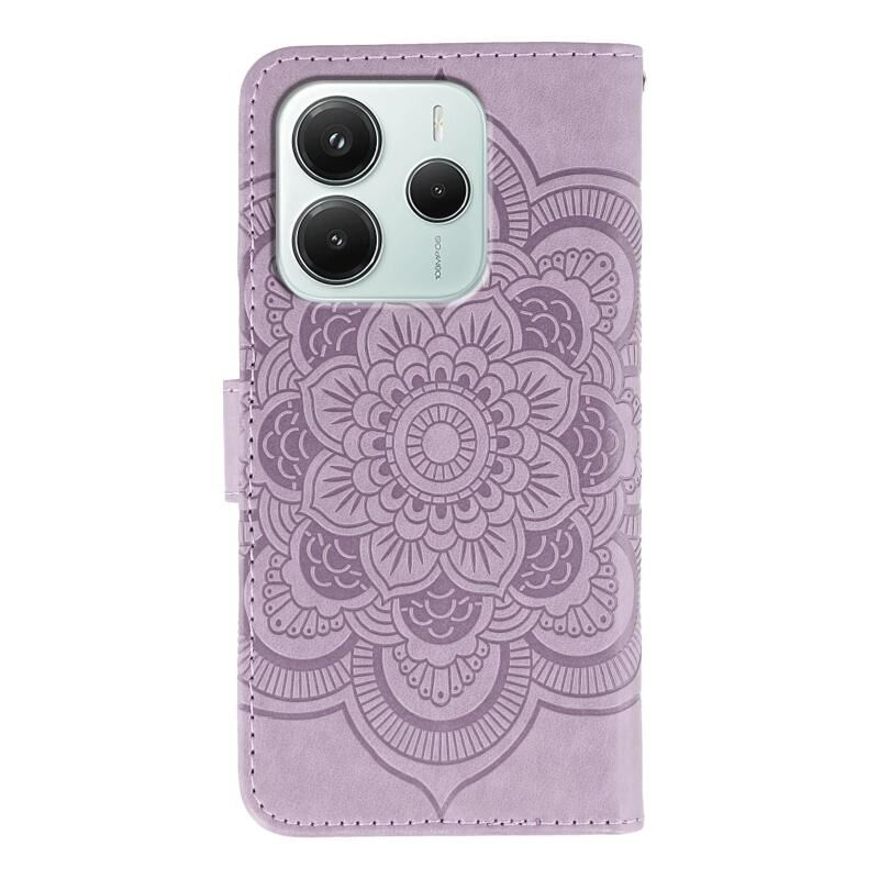 For Redmi Note 14 5G Sun Mandala Embossing Pattern Phone Leather Case(Purple)