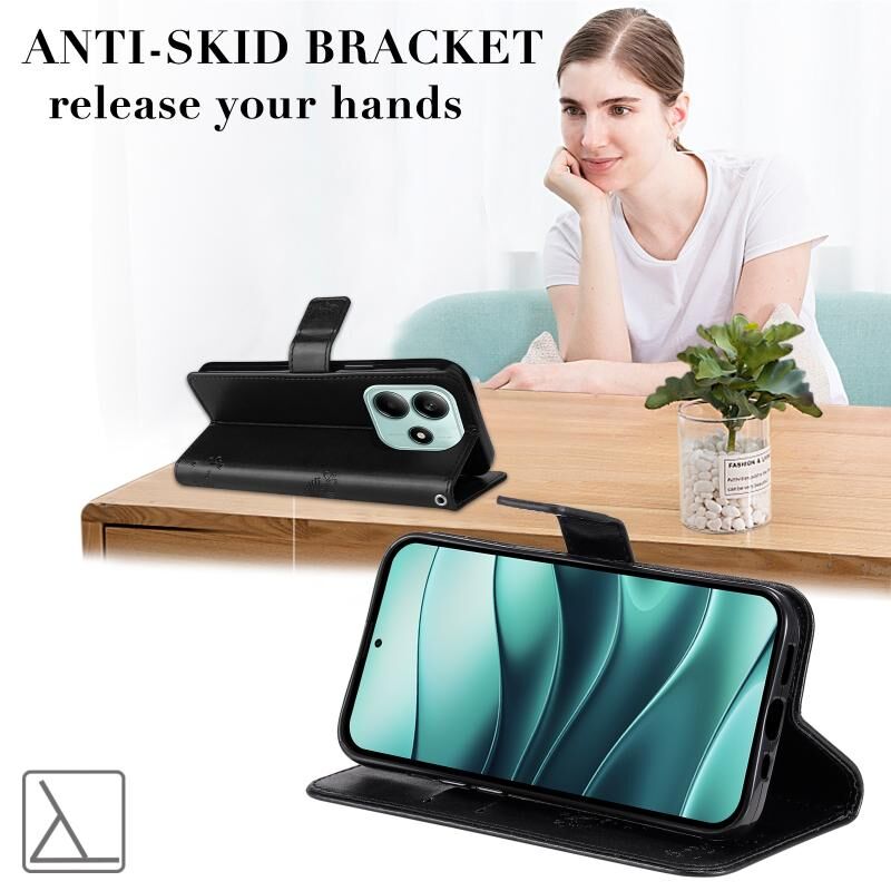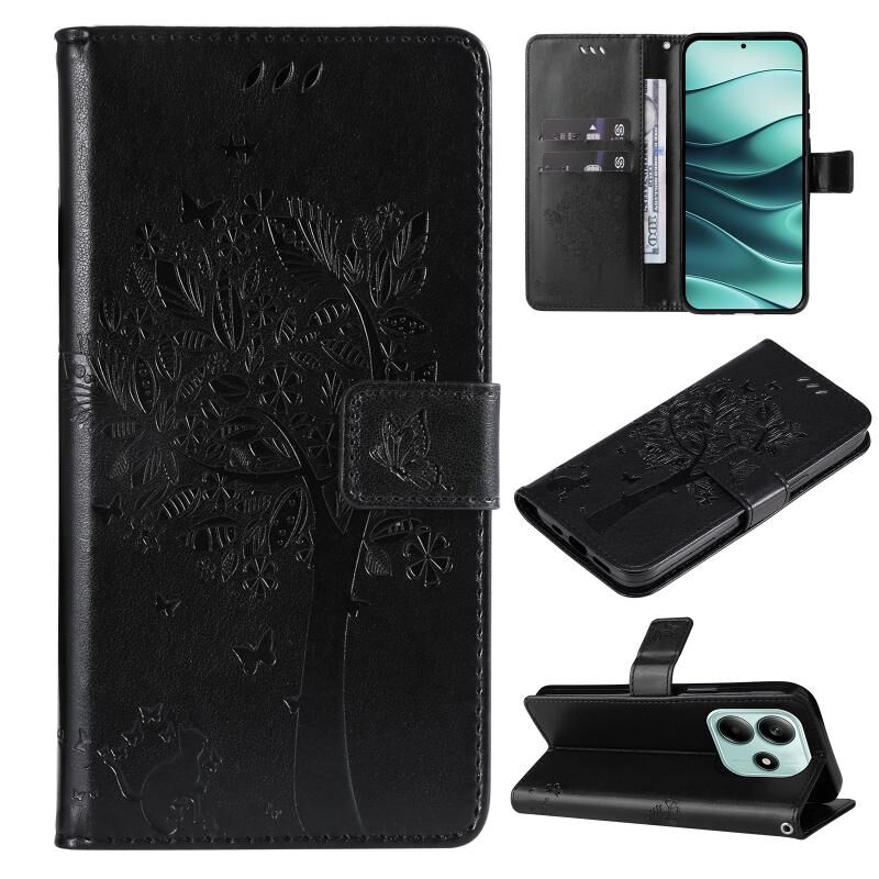 Θήκη τηλεφώνου από δέρμα με σχέδιο ανάγλυφου δέντρου & γάτας για Redmi Note 14 5G (Ροζ)