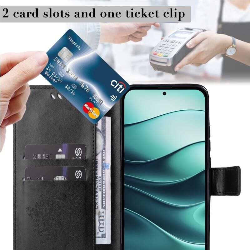 4. Λειτουργία Πορτοφολιού: Η δερμάτινη θήκη είναι εξοπλισμένη με υποδοχές καρτών για την τοποθέτηση καρτών και μικρού ποσού μετρητών.