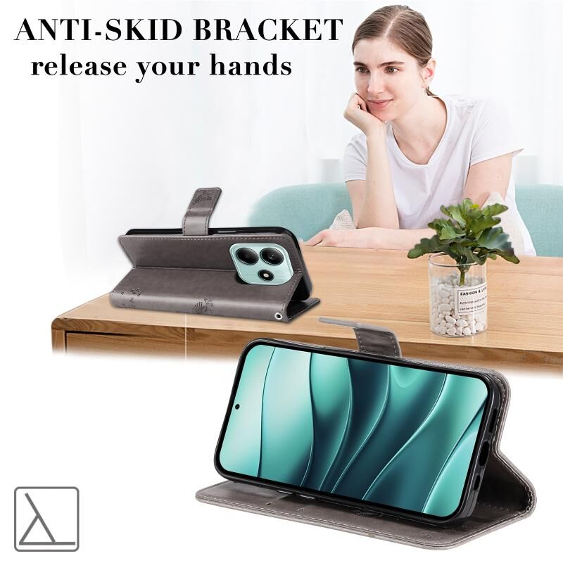 Θήκη τηλεφώνου από δέρμα με σχέδιο ανάγλυφου δέντρου & γάτας για Redmi Note 14 5G (Ροζ)