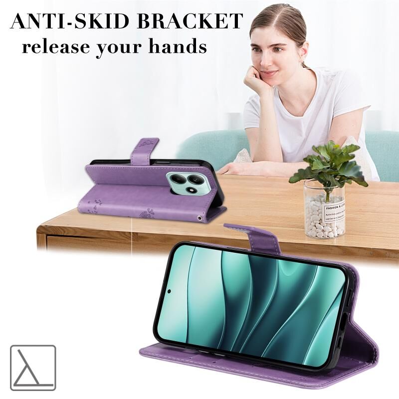 Θήκη τηλεφώνου από δέρμα με σχέδιο ανάγλυφου δέντρου & γάτας για Redmi Note 14 5G (Ροζ)