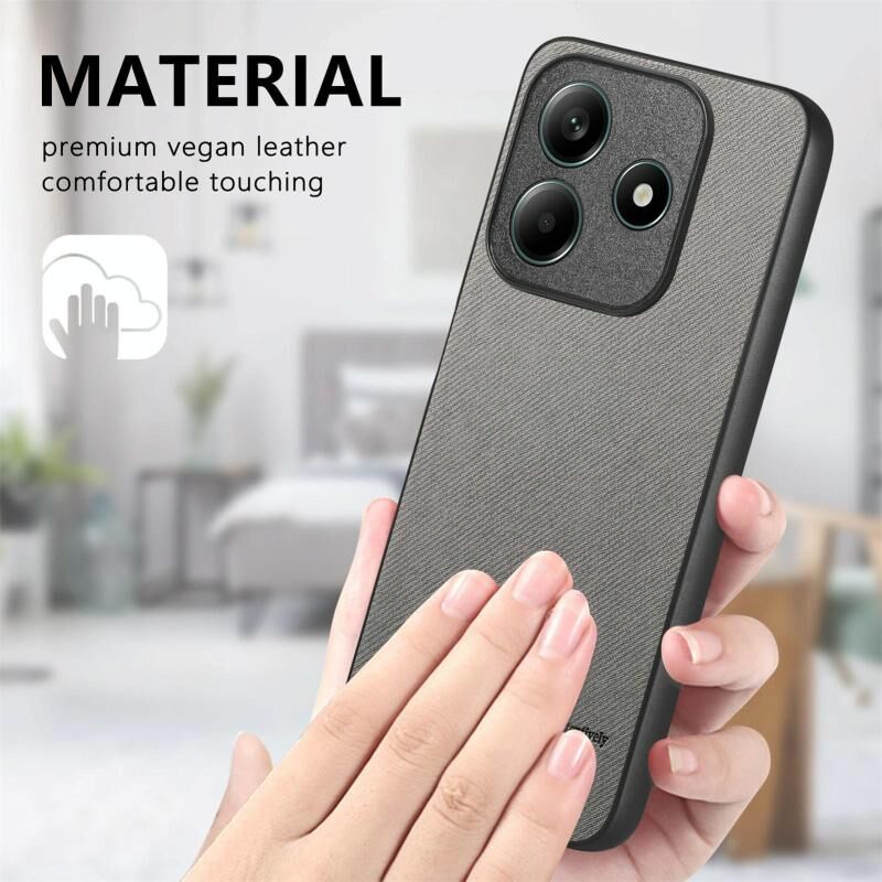 Για Redmi Note 14 5G Twill ύφασμα δέρμα δέρμα δέρμα πίσω υπόθεση τηλεφώνου (γκρι)