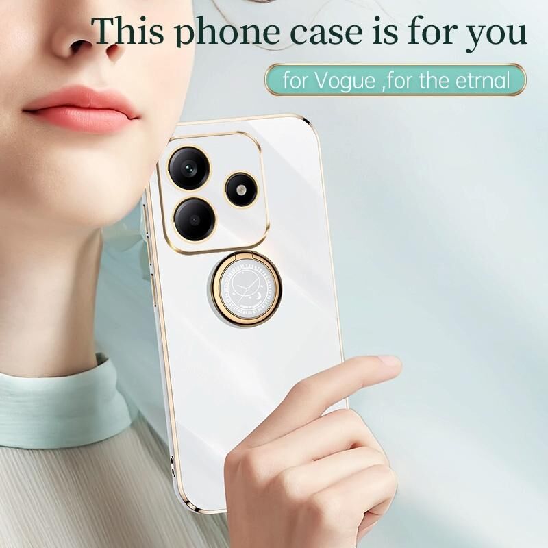 Για Redmi Note 14 5G XINLI Εύθια θήκη με επιμετάλλωση 6D σε χρυσό χρώμα, αντικραδασμική από TPU με δακτύλιο στήριξης (Μέντα Πράσινο) (XINLI)