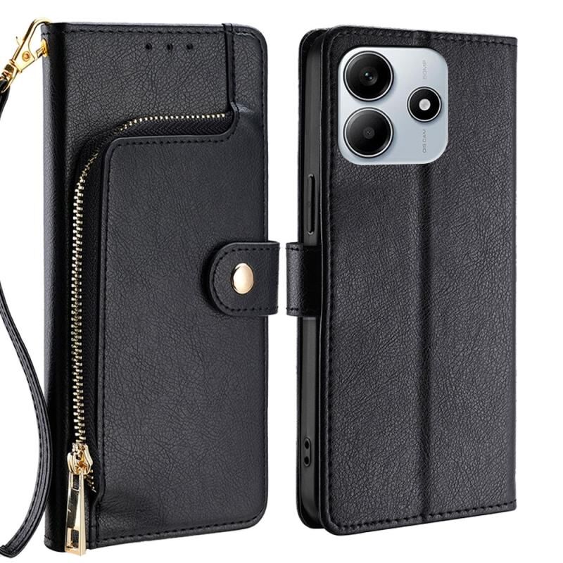 Για Redmi Σημείωση 14 5G φερμουάρ τσάντα δερμάτινη θήκη τηλεφώνου (μαύρο)