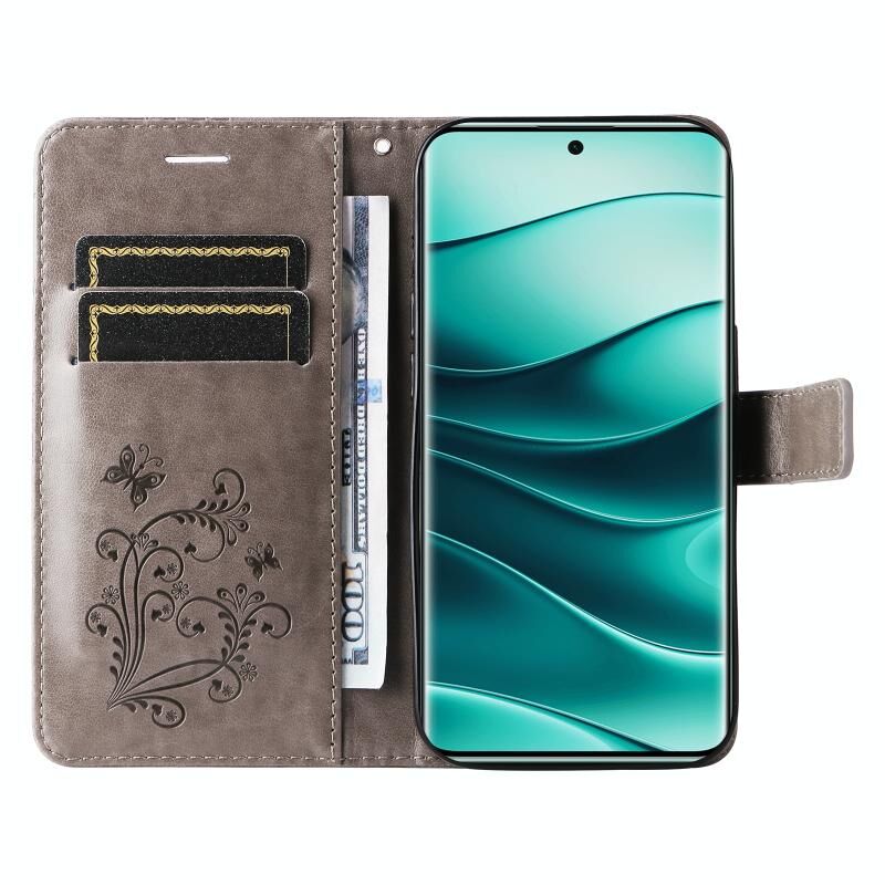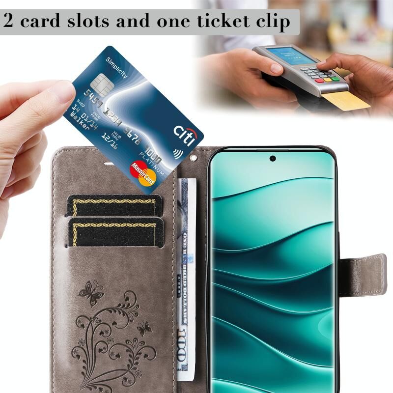Θήκη τηλεφώνου από δέρμα με ανάγλυφο σχέδιο πεταλούδας 3D για Redmi Note 14 Pro / 14 Pro+ 5G (Πράσινο)