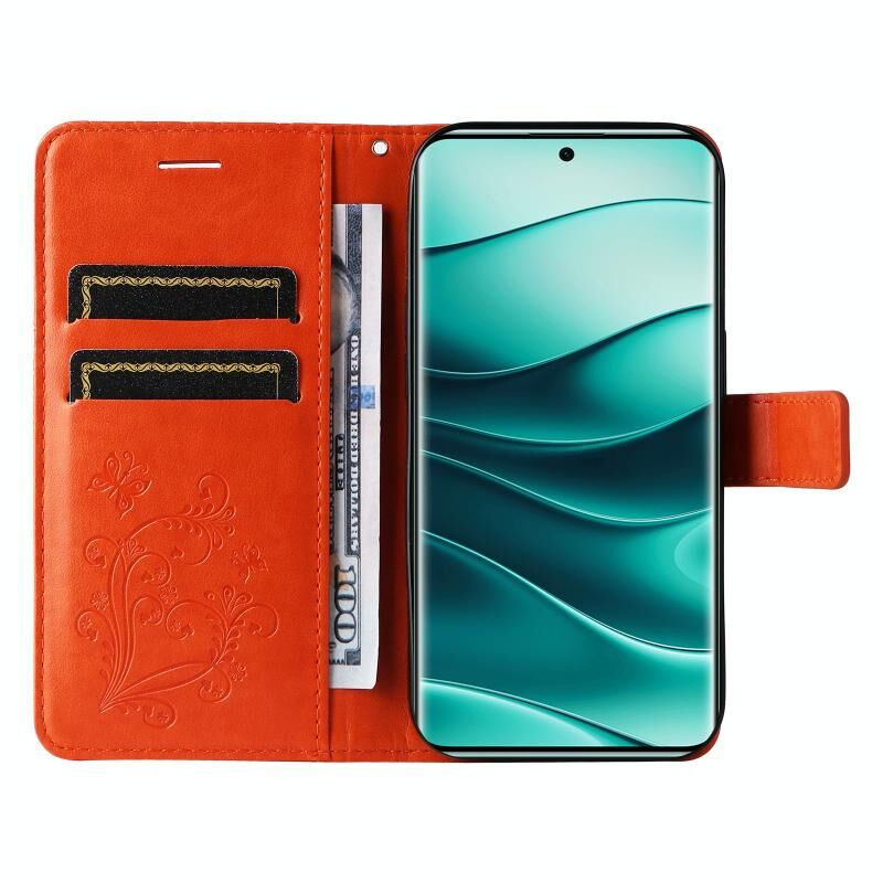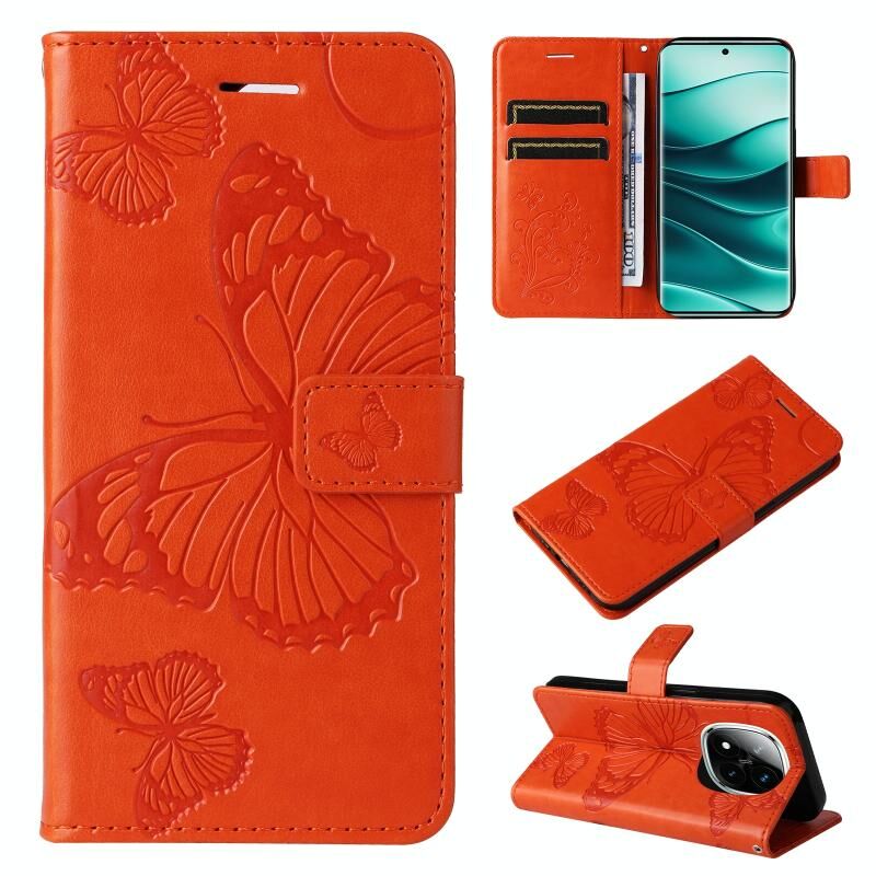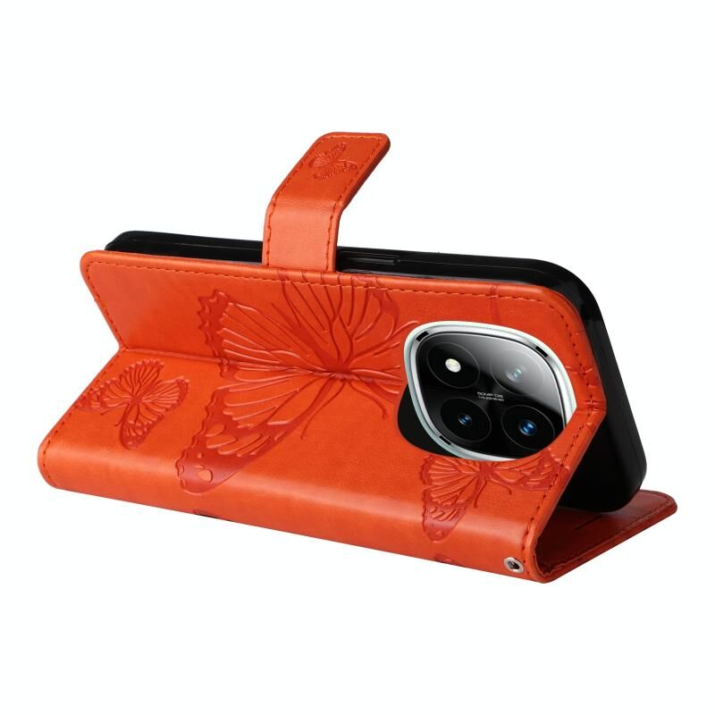 Θήκη τηλεφώνου από δέρμα με ανάγλυφο σχέδιο πεταλούδας 3D για Redmi Note 14 Pro / 14 Pro+ 5G (Μωβ)
