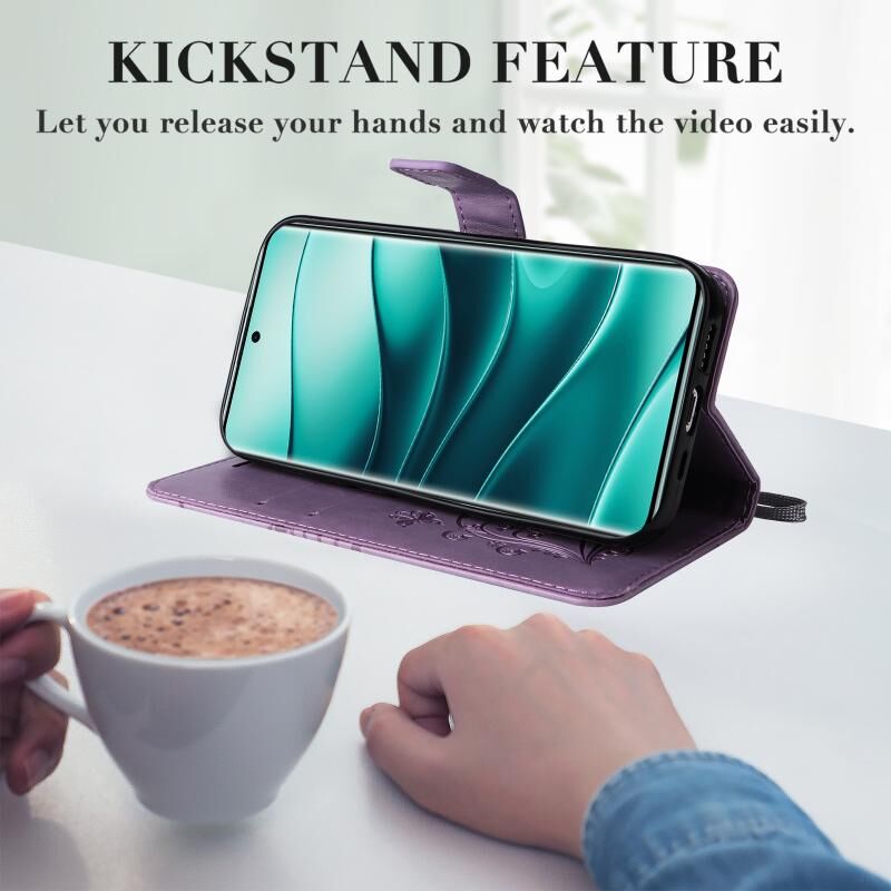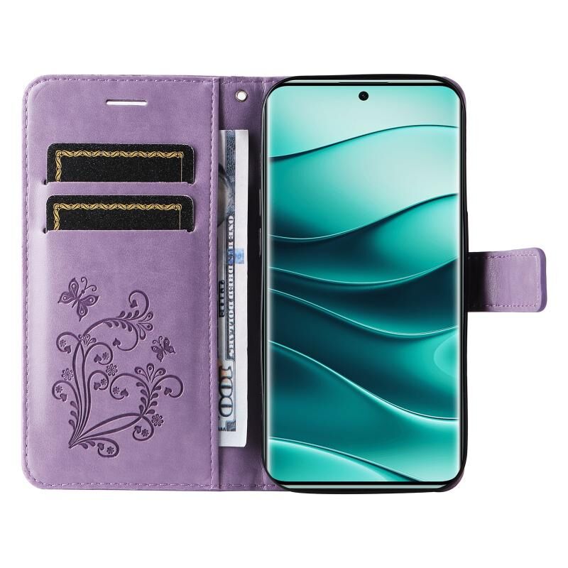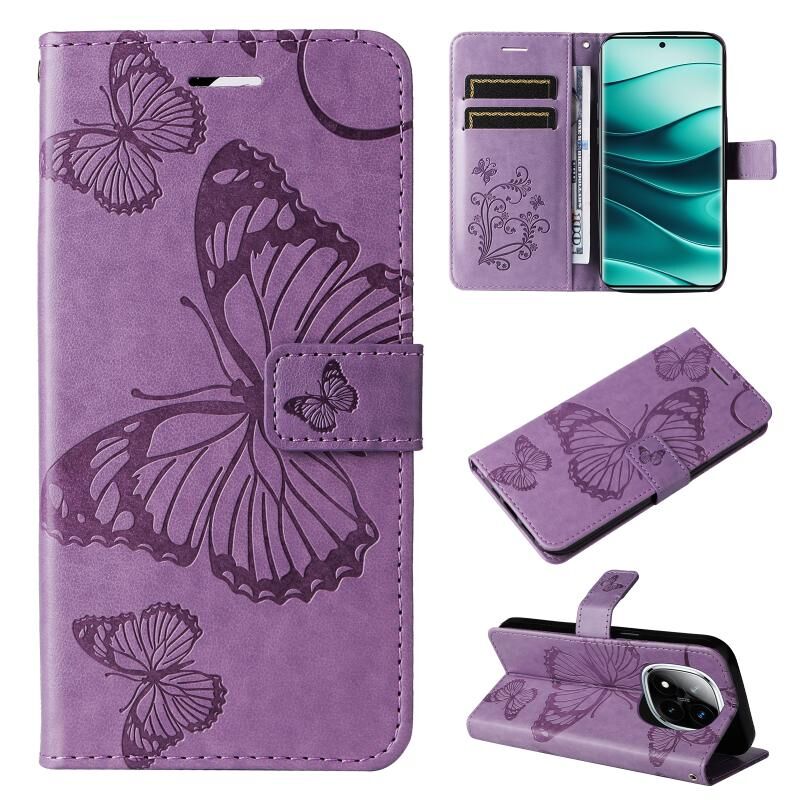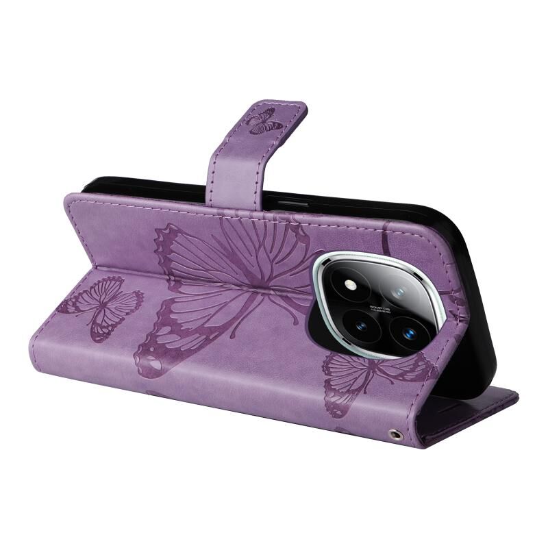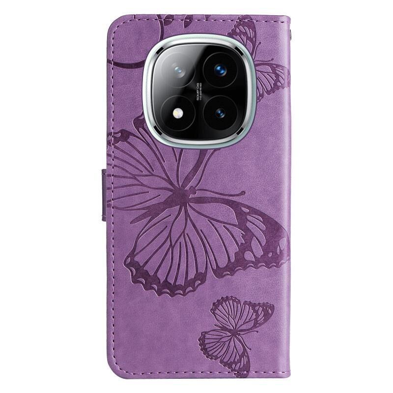 Θήκη τηλεφώνου από δέρμα με ανάγλυφο σχέδιο πεταλούδας 3D για Redmi Note 14 Pro / 14 Pro+ 5G (Μωβ)