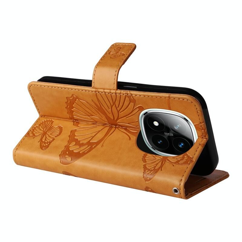 Θήκη τηλεφώνου από δέρμα με ανάγλυφο σχέδιο πεταλούδας 3D για Redmi Note 14 Pro / 14 Pro+ 5G (Μωβ)