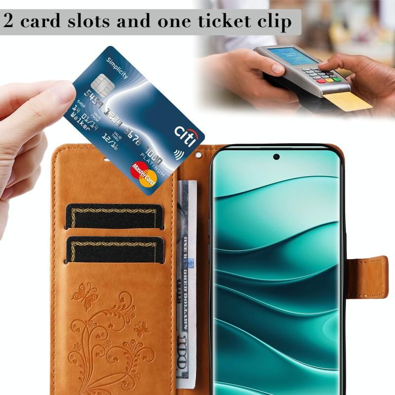 4. Λειτουργία Πορτοφολιού: Η δερμάτινη θήκη είναι εξοπλισμένη με υποδοχές καρτών για την τοποθέτηση καρτών και ενός μικρού ποσού μετρητών.