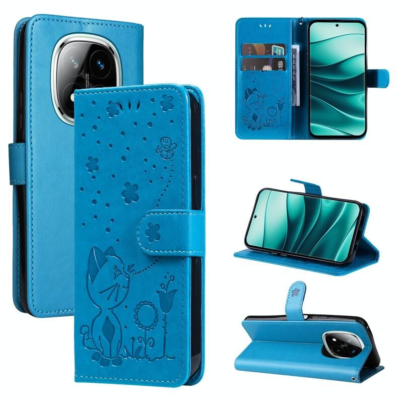 Θήκη τηλεφώνου από δέρμα με ανάγλυφο σχέδιο γάτας και μέλισσας για Bluemi Note 14 Pro / 14 Pro+ 5G (Κόκκινο)