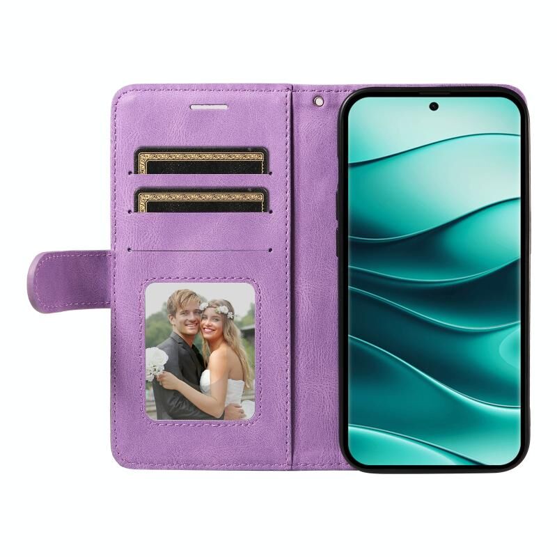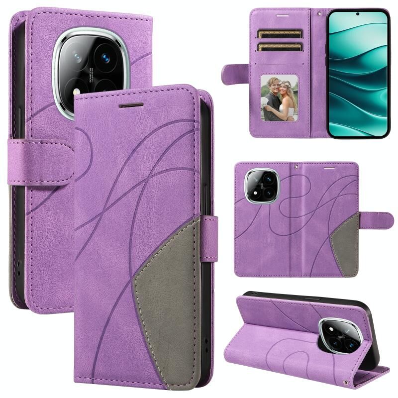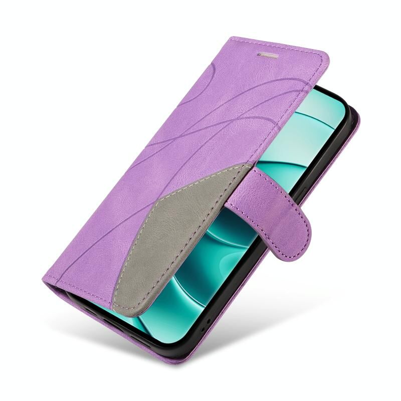 Για Redmi Note 14 Pro / 14 Pro + 5G Διπλό χρώμα Splicing Flip υπόθεση τηλεφώνου δέρμα (μωβ)