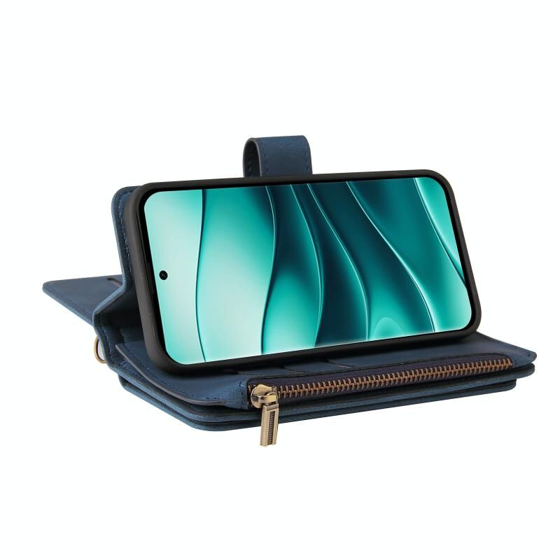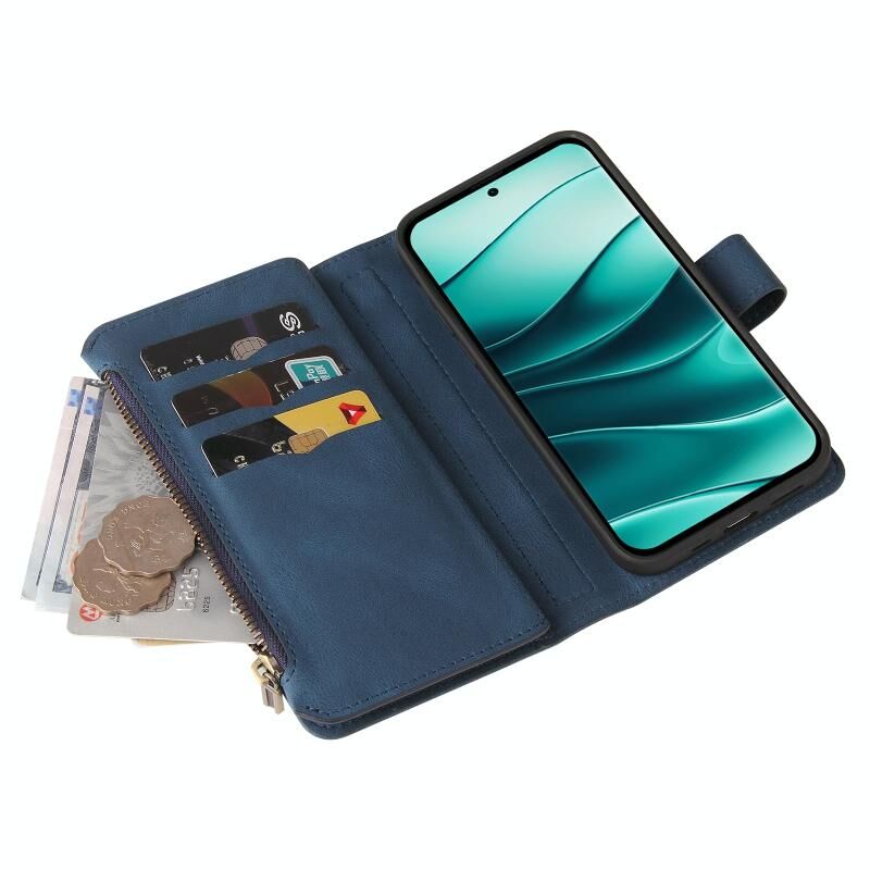 Για Redmi Σημείωση 14 Pro / 14 Pro + 5G δέρμα αίσθηση πολλαπλών καρτών υποδοχές φερμουάρ πορτοφόλι δερμάτινη θήκη τηλεφώνου (μπλε)