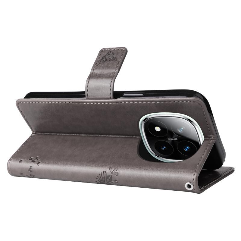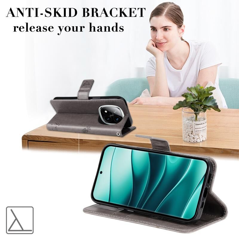 For Redmi Note 14 Pro / 14 Pro+ 5G Tree & Cat Embossed Pattern Flip Leather Phone Case(Grey)