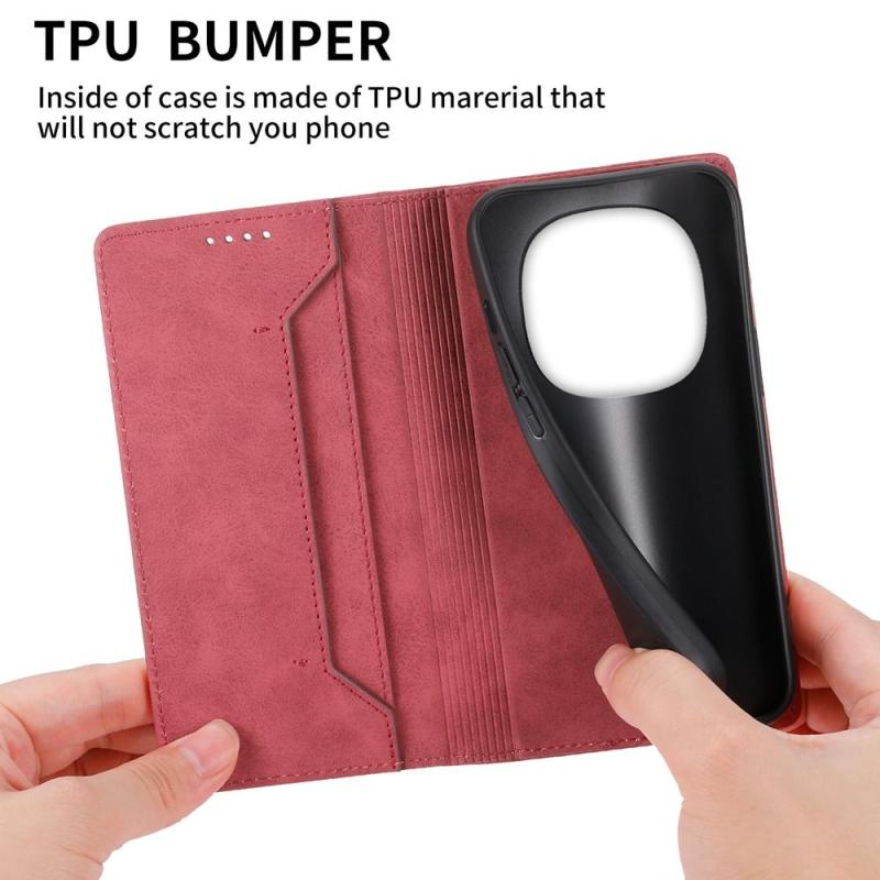 For Redmi Note 14 Pro 4G Business Solid Color Magnetic RFID Leather Phone Case(Red)