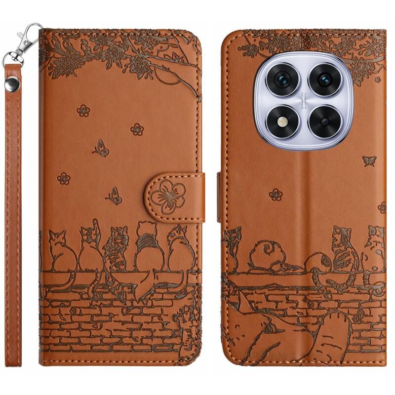 Θήκη τηλεφώνου από δέρμα με ανάγλυφο σχέδιο γάτας για Redmi Note 14 Pro 4G με κορδόνι (Μπλε)