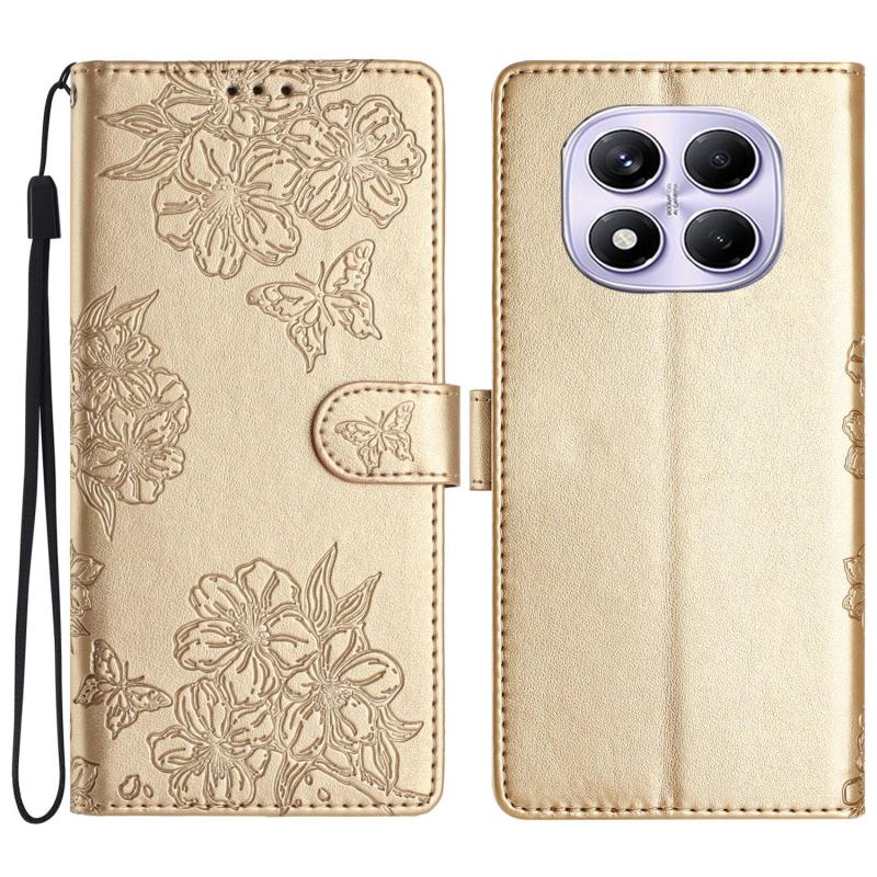 For Redmi Note 14 Pro 4G Cherry Blossom Butterfly Skin Feel Embossed PU Phone Case(Gold)