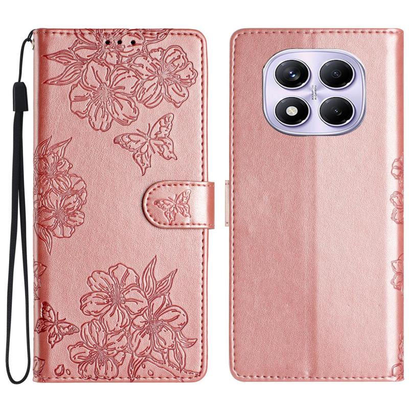 For Redmi Note 14 Pro 4G Cherry Blossom Butterfly Skin Feel Embossed PU Phone Case(Rose Gold)
