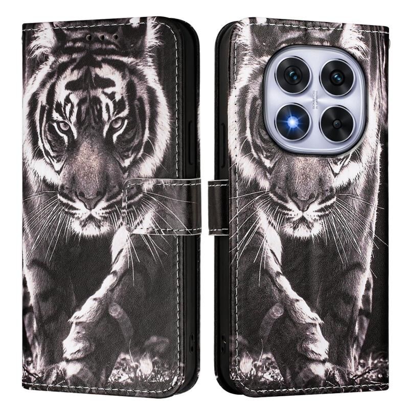 Θήκη τηλεφώνου από δέρμα με απλή ύφανση και πολύχρωμο σχέδιο (Τριαντάφυλλα σε μαύρο) για Redmi Note 14 Pro 4G.