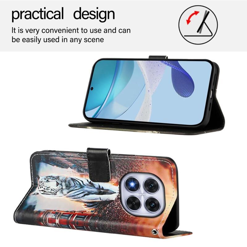 Θήκη τηλεφώνου από δέρμα με απλή ύφανση και πολύχρωμο σχέδιο (γάτες και τίγρεις) για Redmi Note 14 Pro 4G. (Κόκκινο)